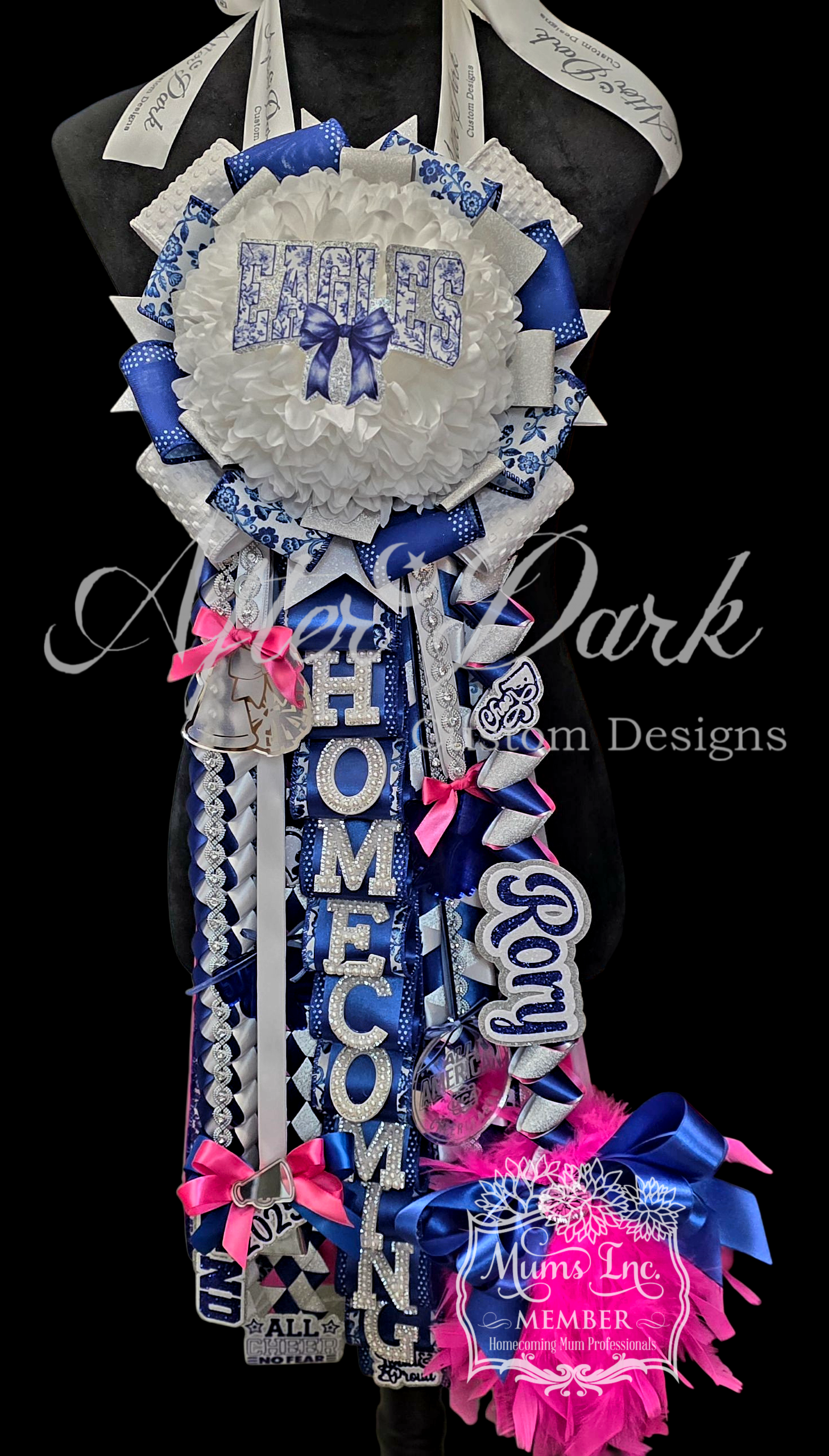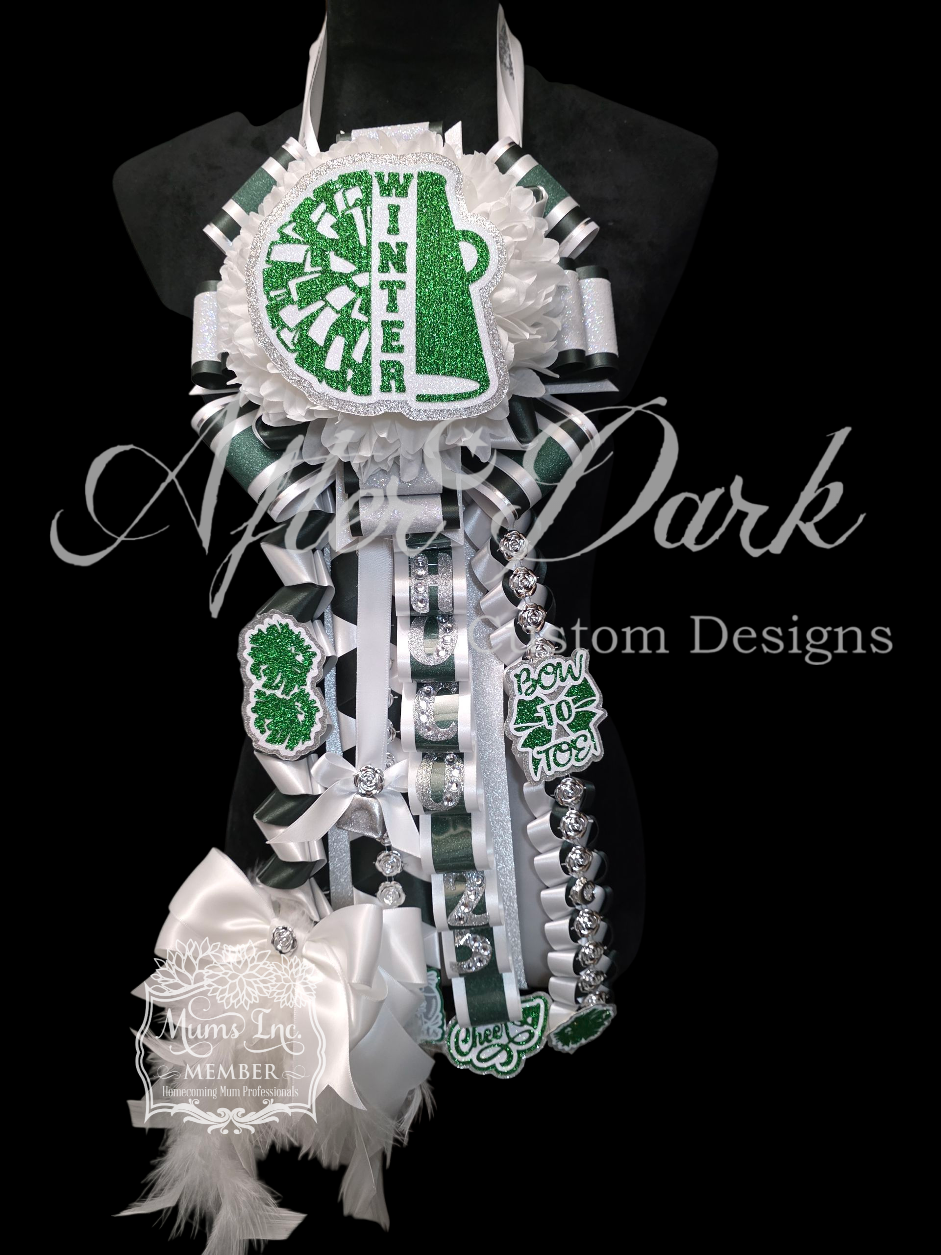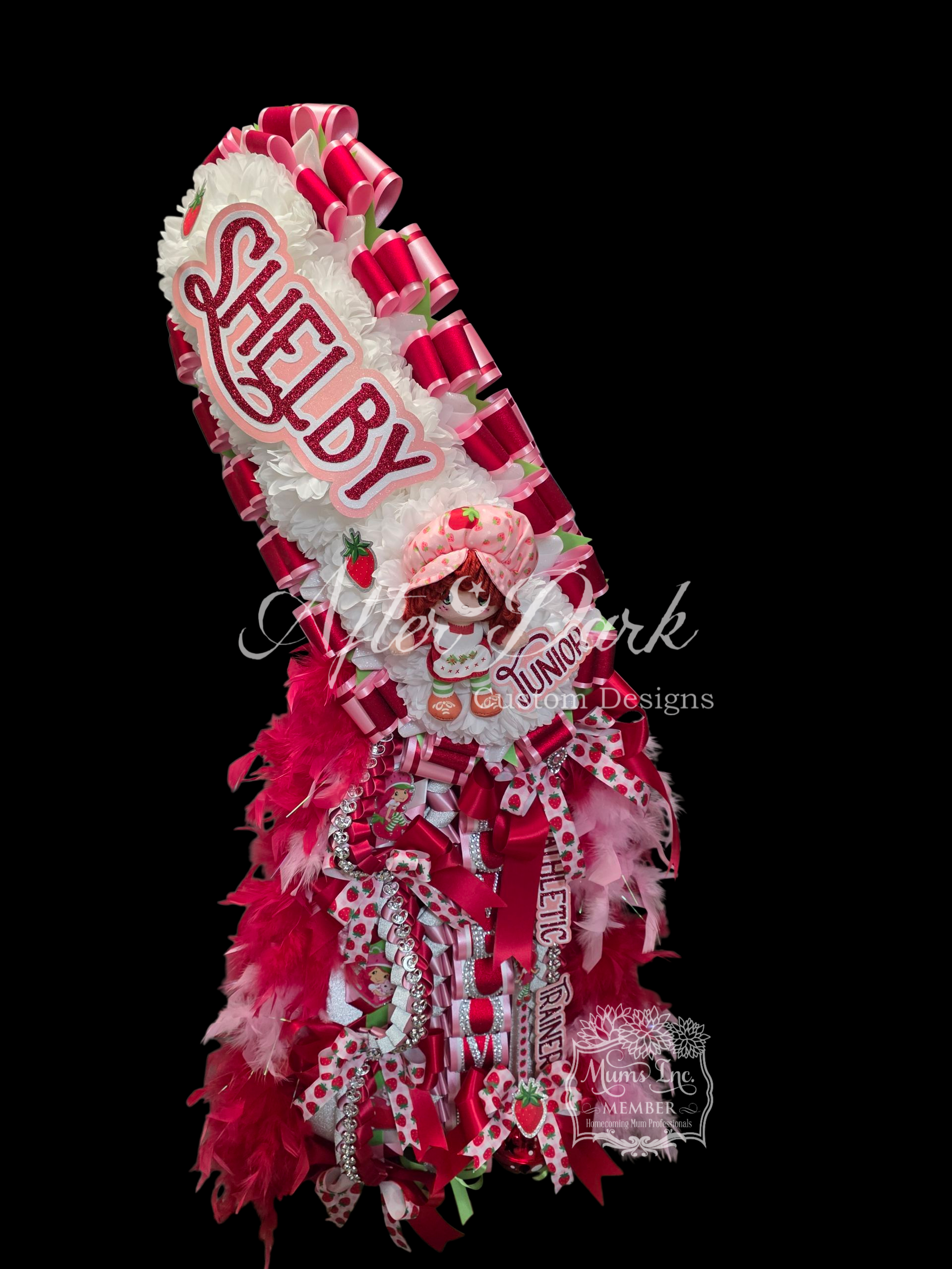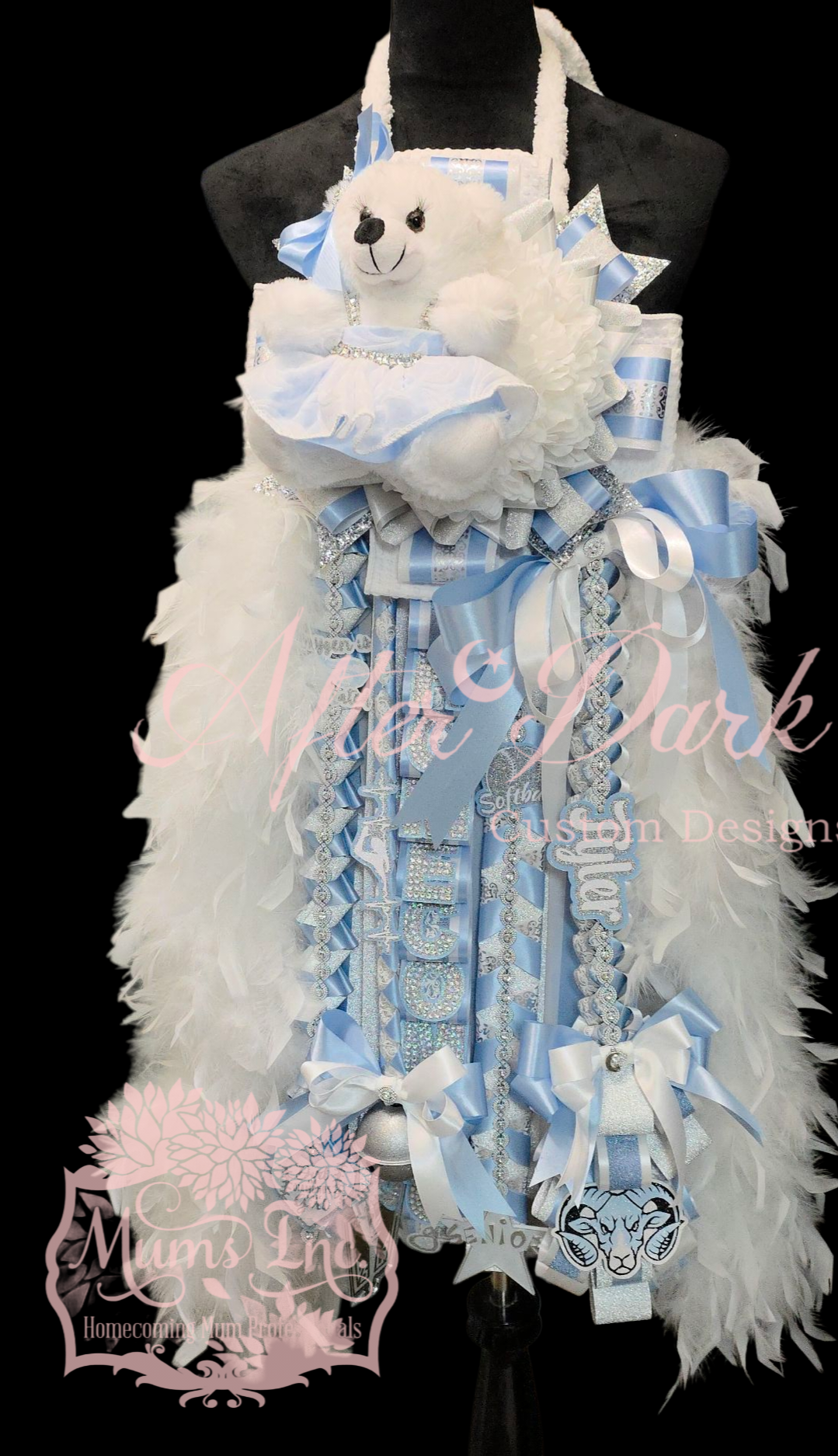 *Luxury Custom Centerpiece—A showstopping focal point: monogram elegance, a sparkling megaphone, or a plush character dressed in full couture — nestled in the floral heart of your mum.