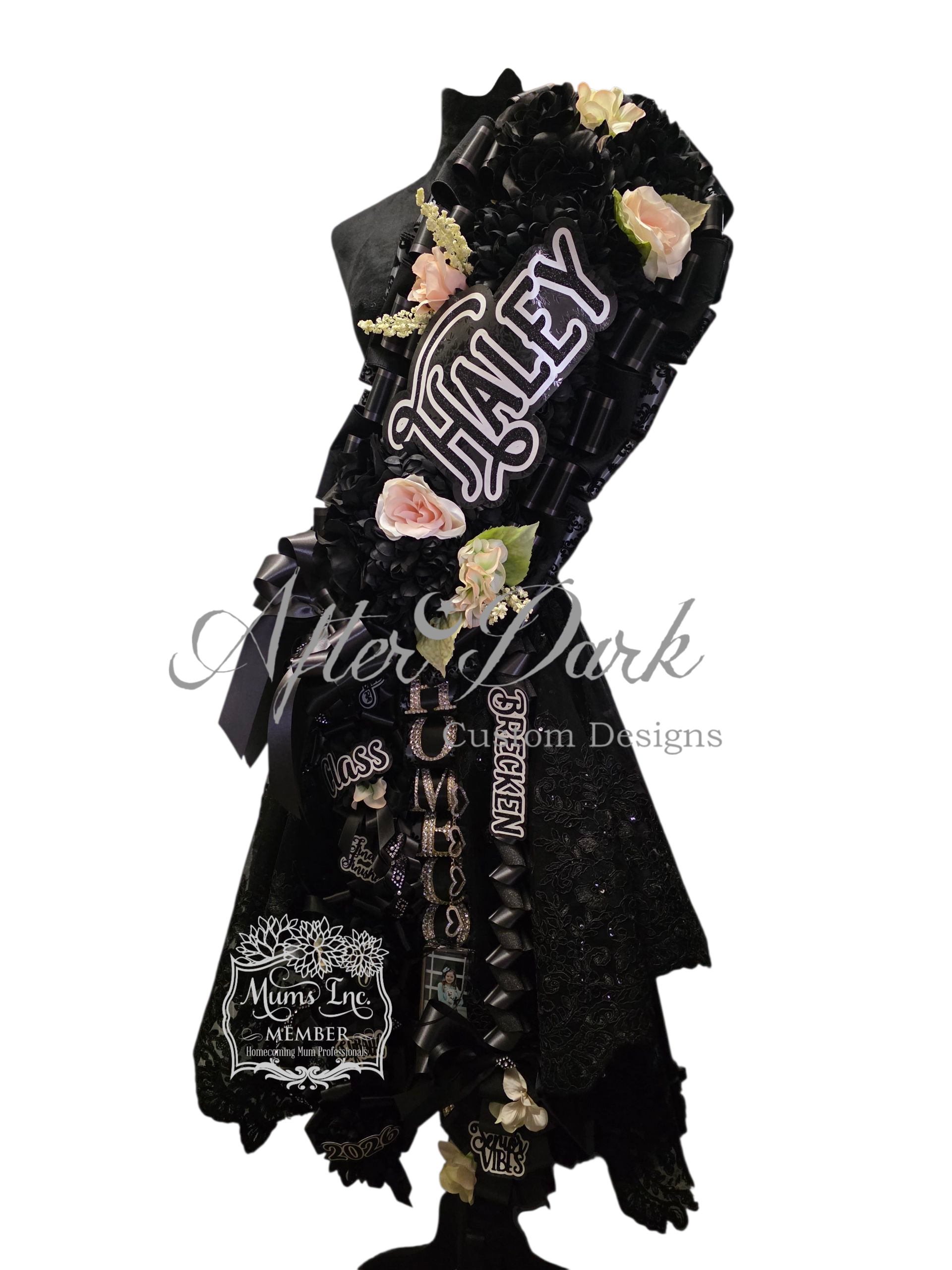 Step into the spotlight with our Noir Collection—Designed for those who crave drama and unforgettable style. Each mum in this collection is a fully custom creation , hand crafted to reflect your unique personality and vision. We bring high-fashion energy to every design with couture-inspired touches: think layered textures, hand-trimmed ribbons, custom monograms and one-of-a-kind embellishments you won't anywhere else. Each piece is an artful statement.